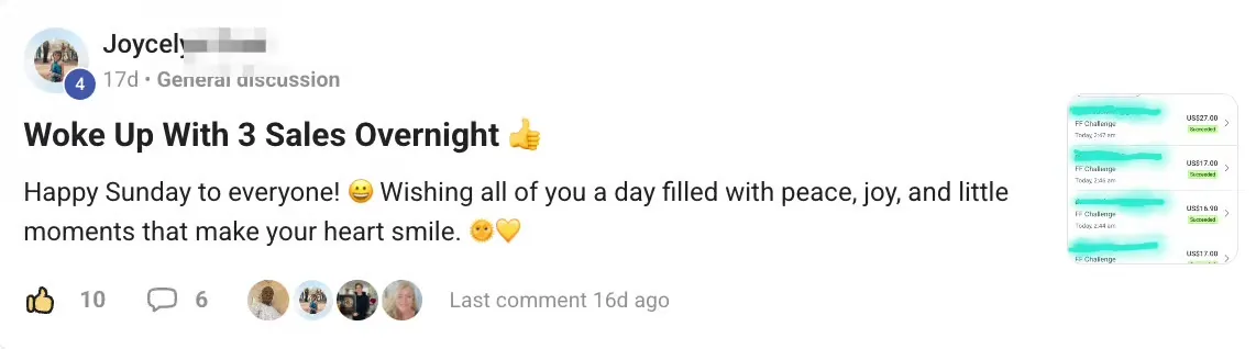 It's simple: You will get everything we talked about… How I setup & sell digital products... How I make my phone go “Ca-Ching” every couple of minutes… How you can copy & paste my entire business for yourself... If you complete the whole challenge and it STILL doesn't work for you… Just message us and we'll help you 1on1 per chat until you make your first 10 sales - You have nothing to loose!